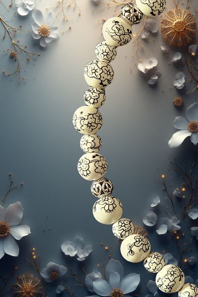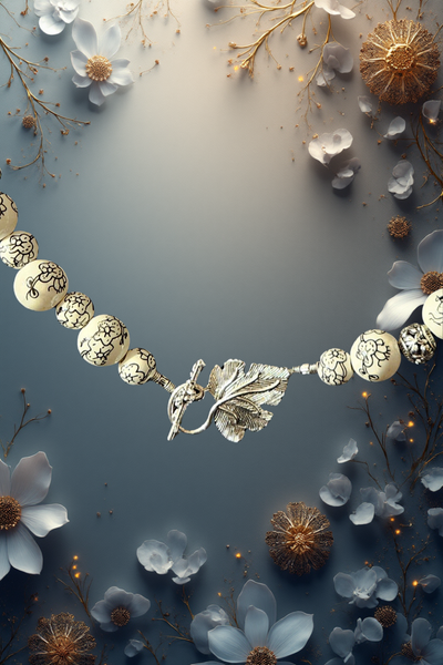 Be the first to review “Black and White Ceramic Beads with Silver Leaf Clasp”