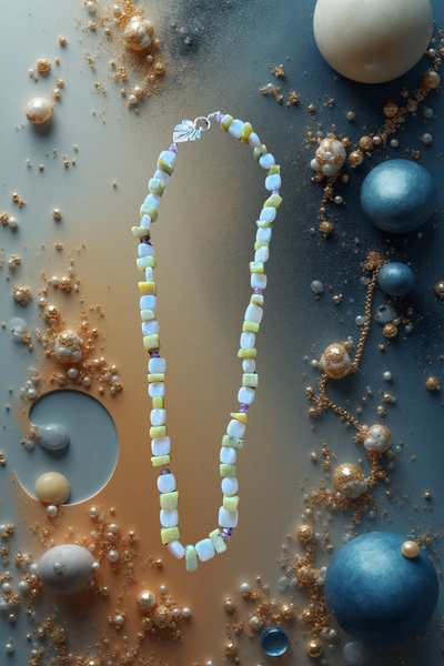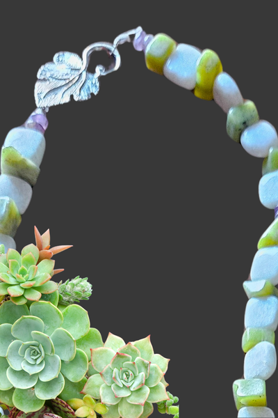Be the first to review “Green Chip Beads with White Flat and Purple Rondelle Beads”