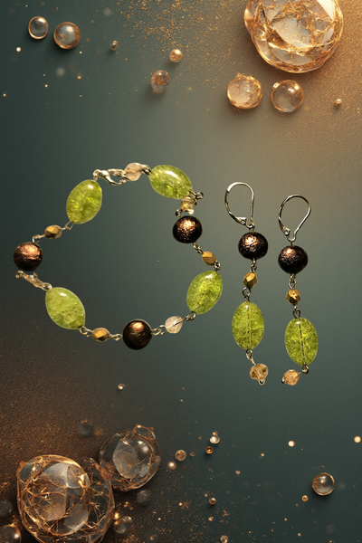 Lime Green and Copper Bead Bracelet. Made in the USA with Czech Beads